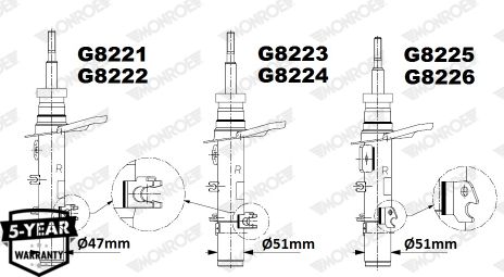 Амортизатор Monroe Original (Gas) передний правый для Peugeot 208 I 2012-2019. Артикул G8221
