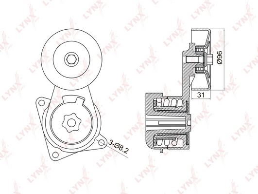 Натяжной ролик (натяжитель) приводного поликлинового ремня LYNXauto. Артикул PB-5030