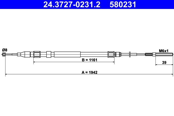 Трос ручника (тросик ручного тормоза) ATE. Артикул 24.3727-0231.2