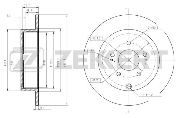 | Диаметр расположения крепежных отверстий | 114,3 мм |