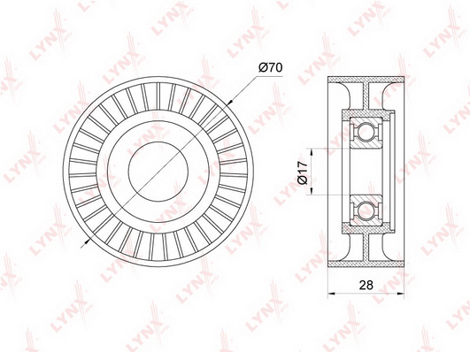 Натяжной ролик (натяжитель) приводного клинового зубчатого ремня LYNXauto. Артикул PT-3064