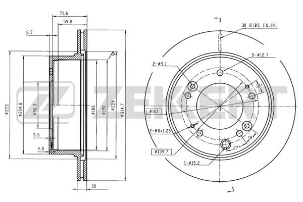 | Диаметр расположения крепежных отверстий | 139,7 мм |