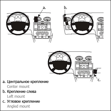 Монтажная платформа жестко крепится в стыковочные щели или на вентиляционных решетках с горизонтальными жалюзийными, не ухудшая внешнего вида, без сверлений и конструктивных переделок. Она может устанавливаться в разные места - предлагается несколько вариаций для одного автомобиля: