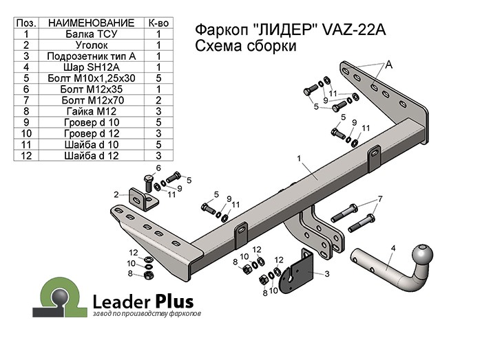 Фаркоп Tavials (Лидер-Плюс) (со съемным шаром) для Lada Kalina I седан, универсал 2004-2013. Артикул T-VAZ-22A
