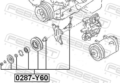 Натяжной ролик (натяжитель) приводного поликлинового ремня Febest. Артикул 0287-Y60