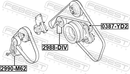 Натяжной ролик (натяжитель) приводного клинового зубчатого ремня Febest. Артикул 2990-M62