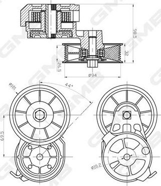 Натяжной ролик (натяжитель) приводного клинового зубчатого ремня GMB. Артикул GAT20360