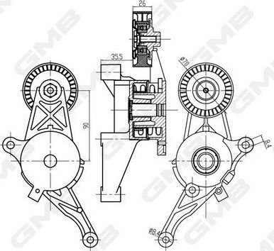 Натяжной ролик (натяжитель) приводного клинового зубчатого ремня (в сборе) GMB. Артикул GAT21060