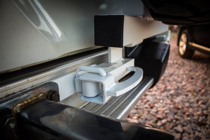 Калитка представляет собой конструкцию из квадратной трубы 60 мм и стенкой 4 мм, способную выдержать вес больших колес без каких-либо деформаций (35×12,5 R17 - гарантированно). Калитка оснащена надежным замком, способным выдержать вибрации и тряску и исключающим самопроизвольное открывание во время движения. Газовый упор облегчает ее открывание и удерживает калитку в открытом положении когда машина стоит под углом.