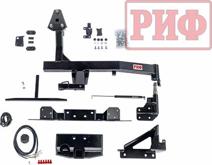 В комплект поставки входит также розетка фаркопа с проводкой и кронштейн для крепления рамки номера на запасном колесе.