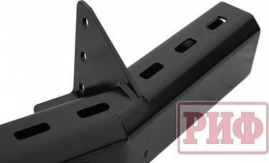Площадка РИФ под лебедку в штатный бампер Toyota Land Cruiser Prado 150 отличается большим запасом прочности и рассчитана на установку лебедки с тяговым усилием до 5400 кг. Площадка имеет в своей конструкции интегрированный защитный брус, заменяющий штатный, который приходится демонтировать при установке площадки и, таким образом, обеспечивает дополнительную защиту спереди. Площадка устанавливается на раму автомобиля и не требует никаких вмешательств в конструкцию, кроме вырезания в штатном бампере аккуратного отверстия под клюз или ролики для троса.