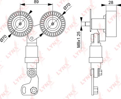 Натяжной ролик (натяжитель) приводного клинового зубчатого ремня LYNXauto. Артикул PT-3096