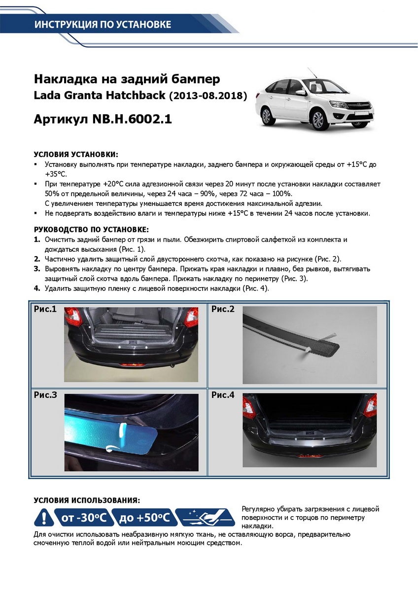 Накладка Rival на задний бампер для Lada Granta I рестайлинг хэтчбек 2018-2026. Артикул NB.H.6012.1