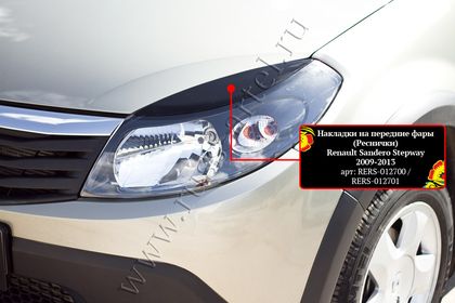 Накладки Русская Артель на передние фары (реснички) для Renault Sandero Stepway I 2009-2014. Артикул RERS-012700