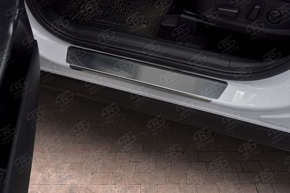 Накладки RusStal на пороги (лист нерж. зеркальный) для Hyundai Santa Fe IV рестайлинг 2021-2026. Артикул HYSFE21-01