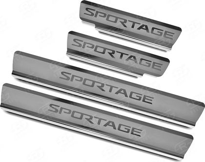 Накладки RusStal на пороги (лист нерж. шлифованный с надписью) для Kia Sportage IV 2016-2026. Артикул KISP16-03