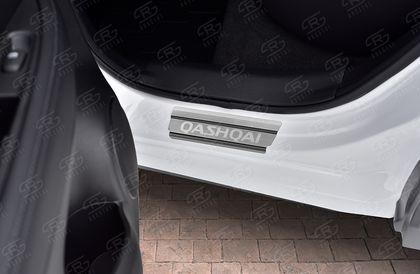 Накладки RusStal на пороги (лист нерж., шлифованный, надпись) для Nissan Qashqai II 2013-2018. Артикул NISQASH14-03
