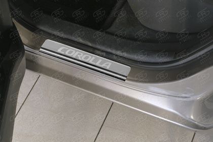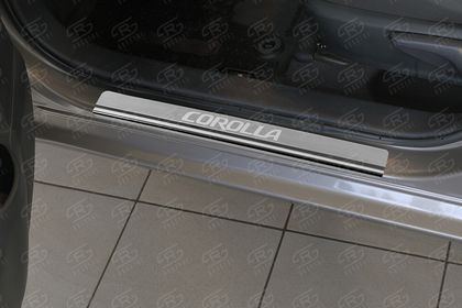 Накладки RusStal на пороги (лист нерж. шлифованный с надписью) для Toyota Corolla E160/E170 2013-2026. Артикул TOYCR13-03