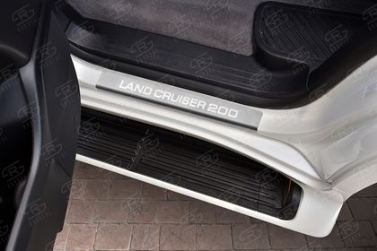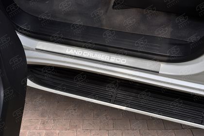 Накладки RusStal на пороги (лист нерж. шлифованный с надписью) для Toyota Land Cruiser 200 2007-2012. Артикул TOYLC07-03