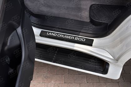 Накладки RusStal на пороги (лист нерж. карбон с надписью) для Toyota Land Cruiser 200 2007-2012. Артикул TOYLC07-06