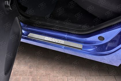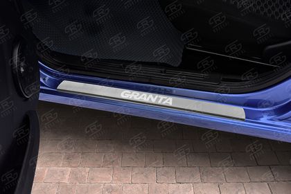 Накладки RusStal на пороги (лист нерж., шлифованный, надпись) для ВАЗ Lada Granta I 2011-2026. Артикул LAGRANT11-03