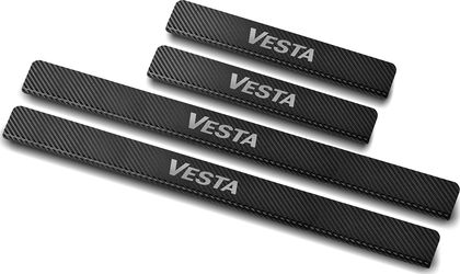 Накладки RusStal на пороги (лист нерж. карбон с надписью) для Lada Vesta I SW Cross 2017-2026. Артикул LDVSSW17-06