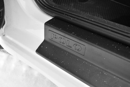 Накладки на пороги служат не только защитным элементом проемов дверей от сколов и царапин, но и являются стильными элементами тюнинга автомобиля.Установка накладок в проемы дверей на VOLKSWAGEN Polo