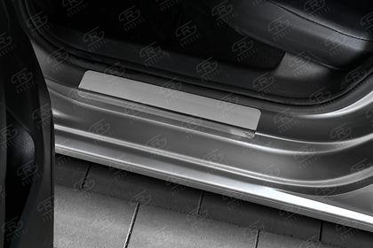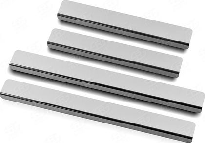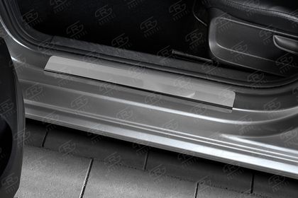 Накладка RusStal на пороги (лист нерж. зеркальный) для Volkswagen Polo V рестайлинг 2015-2020 седан. Артикул VWPOL15-01