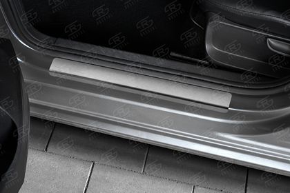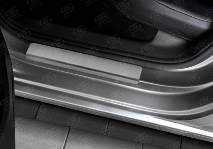 Накладка RusStal на пороги (лист нерж. шлифованный) для Volkswagen Polo V рестайлинг 2015-2020 седан. Артикул VWPOL15-02