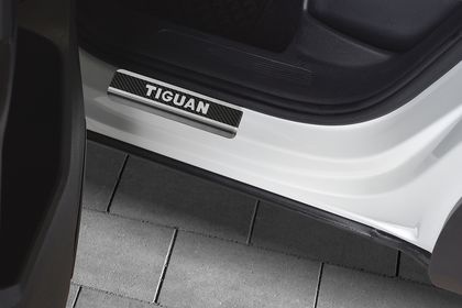 Накладки RusStal на пороги (лист нерж. карбон с надписью) для Volkswagen Tiguan II 2017-2026. Артикул VWTIG17-06