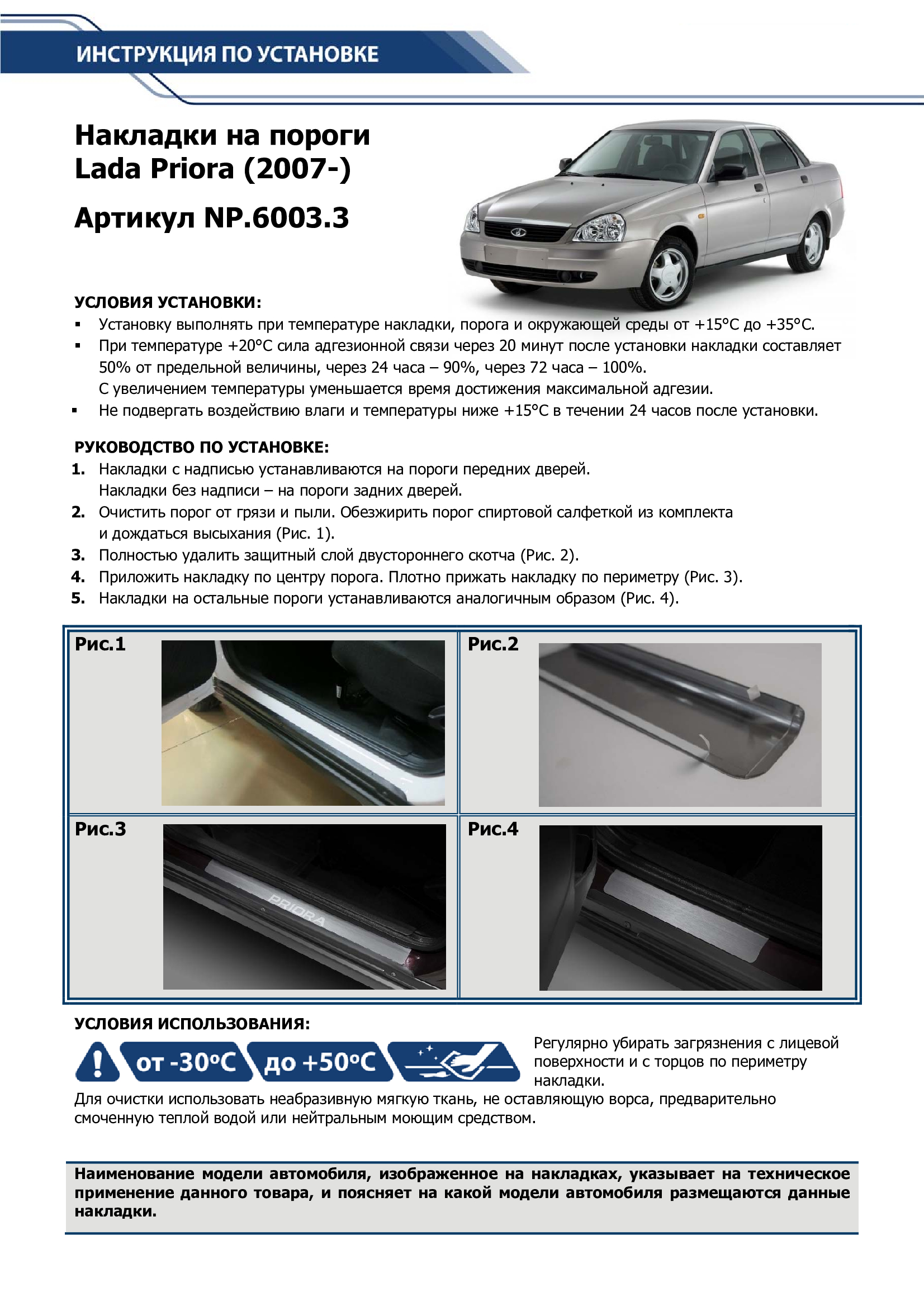 Накладки Rival на пороги (с надписью) для Lada (ВАЗ) Priora 2007-2018. Артикул NP.6003.3