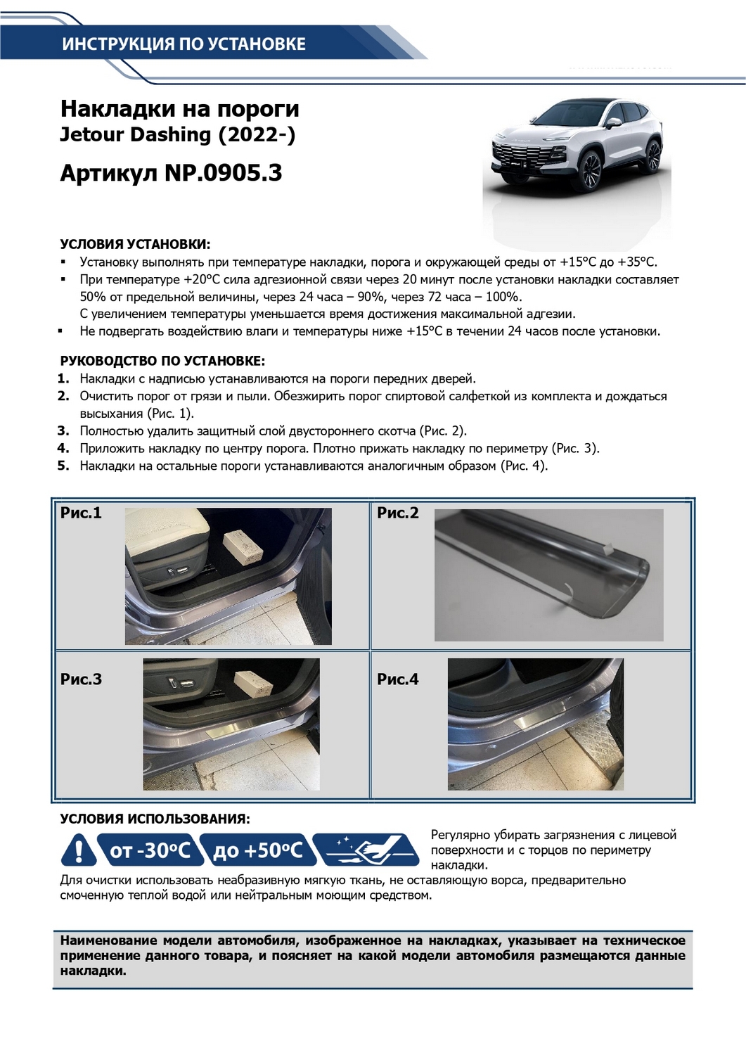 Накладки Rival на пороги (с надписью) для Jetour Dashing 2022-2026. Артикул NP.0905.3