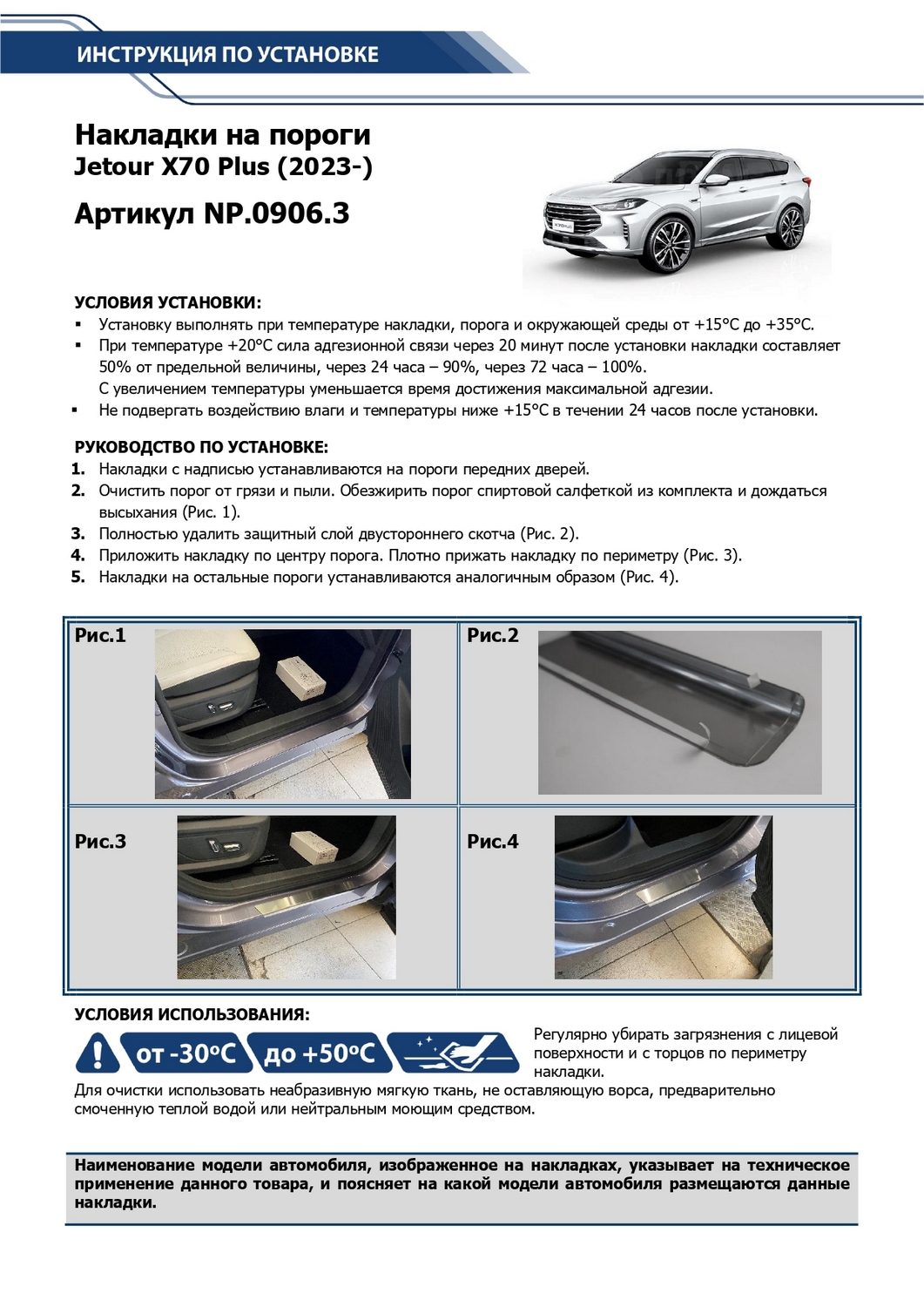 Накладки Rival на пороги (с надписью) для Jetour X70 Plus 2023-2026. Артикул NP.0906.3