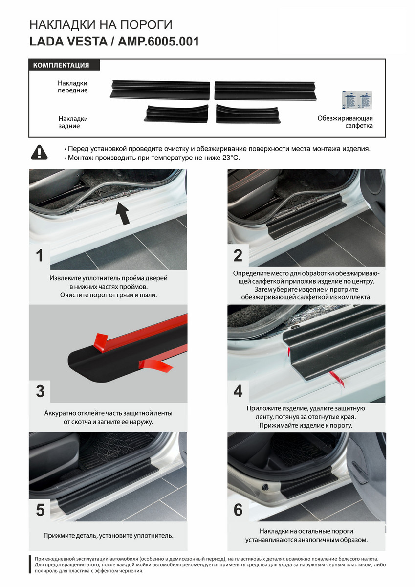 | Комплектация | Накладка (1 шт.), двусторонний скотч 3М, праймер |
