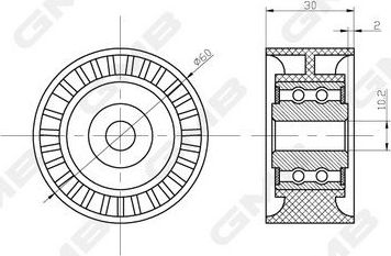 Направляющий (ведущий) ролик ремня ГРМ GMB для Citroen C1 I 2005-2014. Артикул GT30500