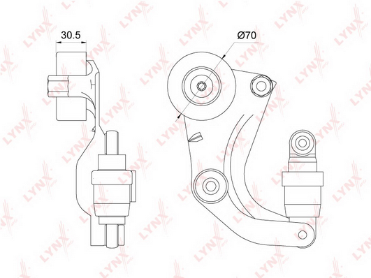 Натяжной ролик (натяжитель) приводного клинового зубчатого ремня LYNXauto для Honda Civic VIII 2006-2011. Артикул PT-3014