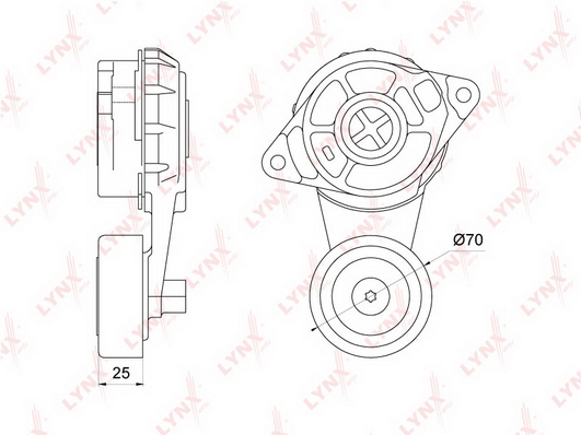 Натяжной ролик (натяжитель) приводного поликлинового ремня LYNXauto для Honda Fit II 2008-2014. Артикул PB-5323