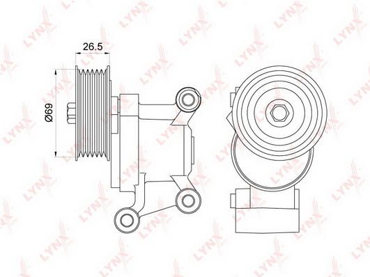 Натяжной ролик (натяжитель) приводного клинового зубчатого ремня LYNXauto для Mazda 5 II (CW) 2010-2015. Артикул PT-3109
