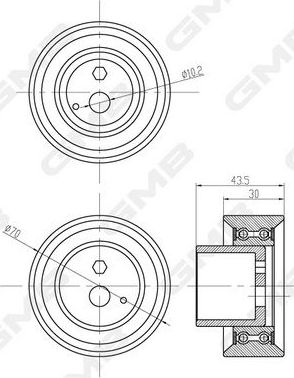 Натяжной ролик (натяжитель) ремня ГРМ GMB для Nissan Sunny N14 1990-1995. Артикул GT80760
