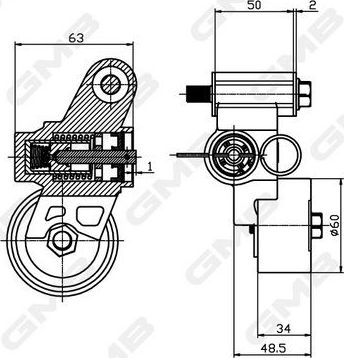 Натяжной ролик (натяжитель) ремня ГРМ GMB для Subaru Forester II 2002-2008. Артикул GHAT-147