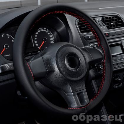 Оплётка на руль Rezkon (размер L, экокожа перф., цвет СЕРЫЙ/Красная нитка). Артикул 8001022024
