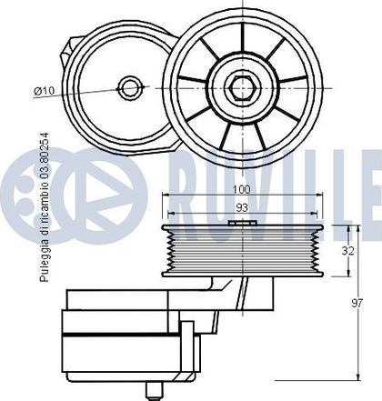 Натяжной ролик (натяжитель) приводного клинового зубчатого ремня (в сборе) Ruville. Артикул 541019