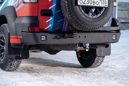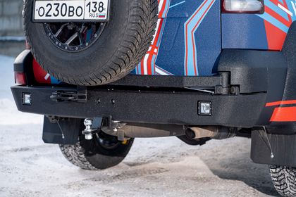 | Комплектация | C квадратом под фаркоп, кронштейном крепления запасного колеса по центру, кронштейном крепления гос номера и фарами заднего хода/ ПТФ |