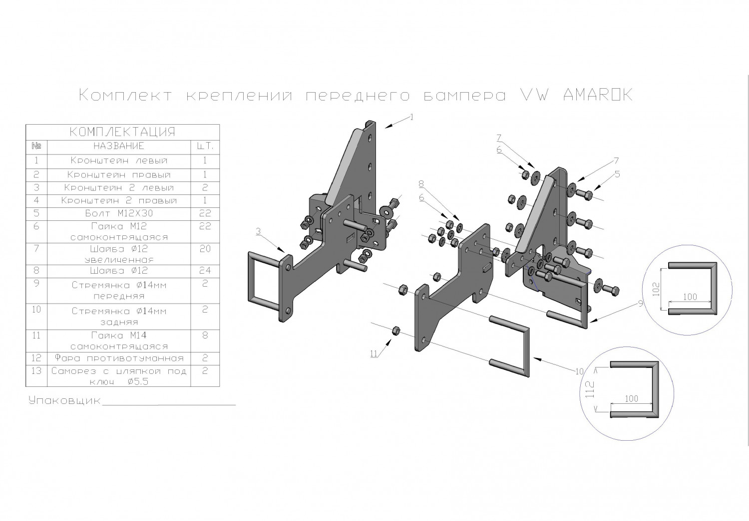 | Прочее | В комплекте нет болтов, используются болты от штатного бампера |