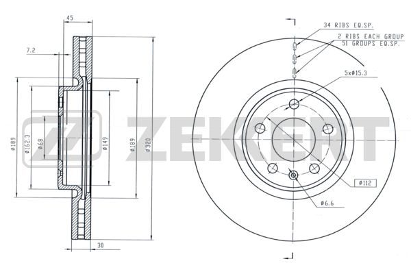 Тормозной диск Zekkert передний для Audi A6 III (C6) 2004-2011. Артикул BS-5334