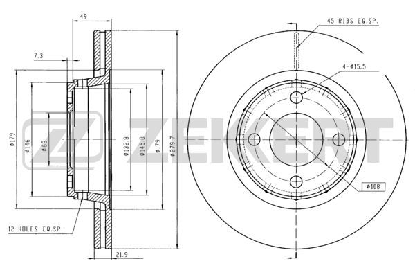 Тормозной диск Zekkert передний для Audi Coupe II (B3) 1988-1994. Артикул BS-5081