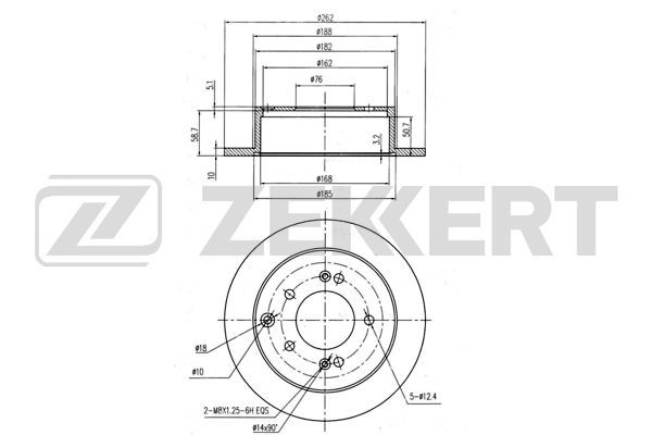 Тормозной диск Zekkert задний для Kia Cerato I 2004-2009. Артикул BS-5651