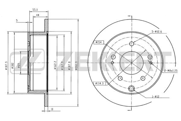 Тормозной диск Zekkert передний для Mitsubishi Colt VI (Z20/Z30) 2004-2012. Артикул BS-5407