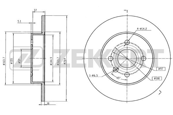 Тормозной диск Zekkert задний для Opel Combo C 2001-2012. Артикул BS-5293