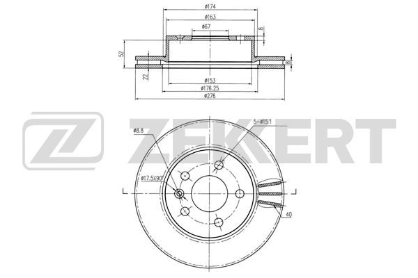 Тормозной диск Zekkert передний для Volkswagen Golf III 1991-1999. Артикул BS-5088